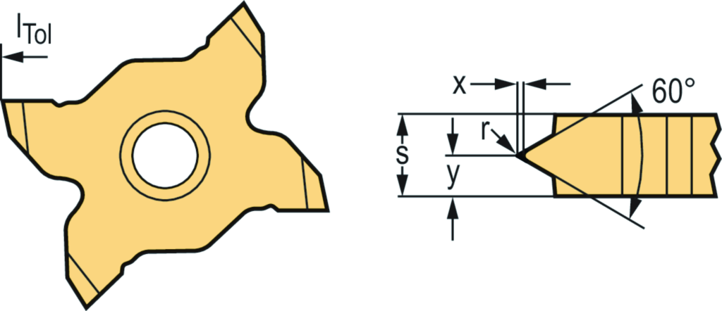 | Ausführung und Anzahl bestückter Schneidenecken | TCE | S |