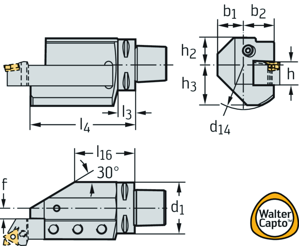 | Nach DIN4000-89-607012 - Werkzeughalter und Zwischenmodule Coromant Capto System SANDVIK - Prismaaufnahme KENNAMETAL | ||
