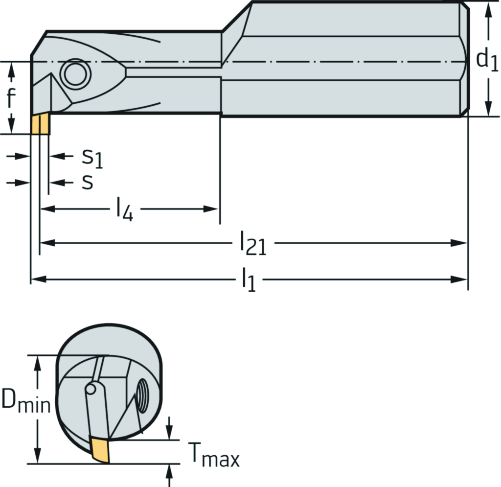 Bohrstange – Innenstechen I12 • Schraubenklemmung • metrisch • Zylinderschaft • rechts • GX09 • s=2mm • Tmax=3mm