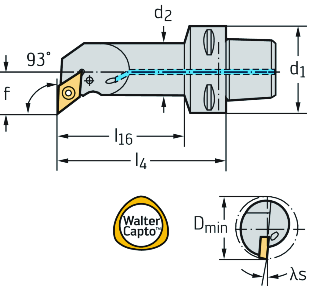 Bohrstange – Kniehebelspannung C...-PDUN • Walter Turn • metrisch • Walter CaptoTM ISO 26623 • rechts • C4 • 40mm • rhombische Platte • DN .. 1506 ..