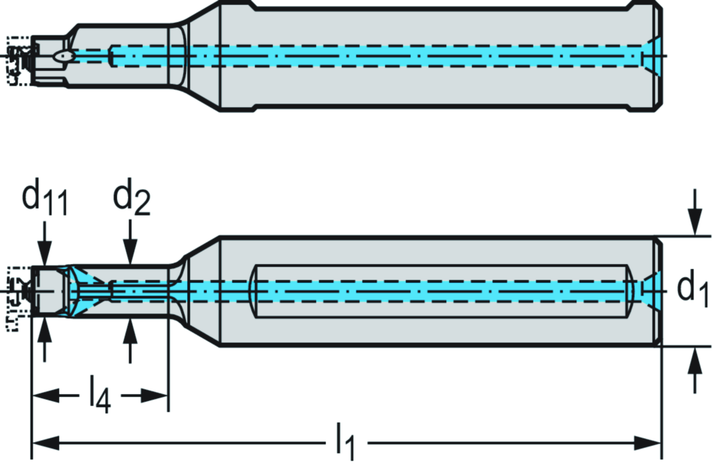 Bohrstange für Wechselkopf W3270-A • inch • Schraubenklemmung • A = Stahlausführung mit IK • d1=5/8 • d11=05