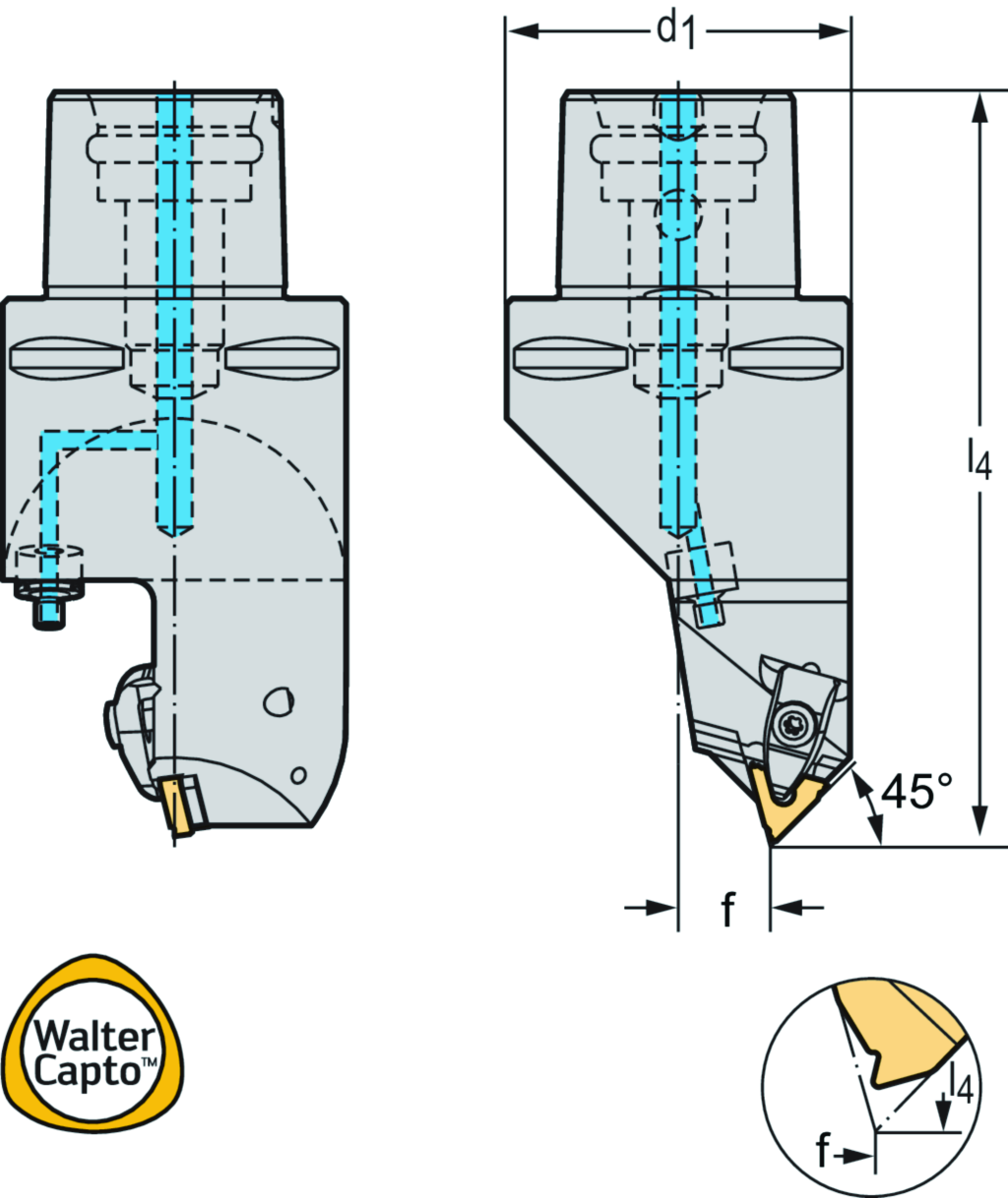 Drehhalter 45° – Außengewinde T1051-C... • metrisch • Walter CaptoTM ISO 26623 • rechts • C6 • NT .. SE22 ..