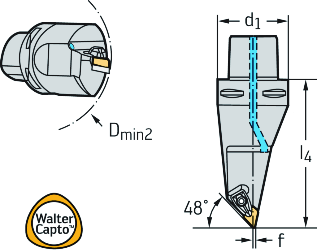 Drehhalter 45° – Pratzenspannung C...-DDMN • Walter Turn • metrisch • Walter CaptoTM ISO 26623 • κ=93° • links • C6 • rhombische Platte • DN .. 1506 ..