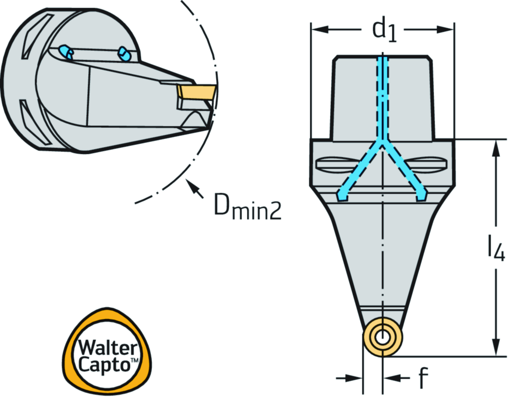 Drehhalter 45° – Schraubenspannung C...-SRDC • Walter Turn • metrisch • Walter CaptoTM ISO 26623 • Neutral • C6 • runde Platte • RC .. 1606 ..