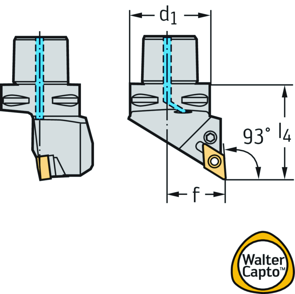 Drehhalter – Kniehebelspannung C...-PDJN • Walter Turn • metrisch • Walter CaptoTM ISO 26623 • κ=93° • rechts • C4 • rhombische Platte • DN .. 1506 ..