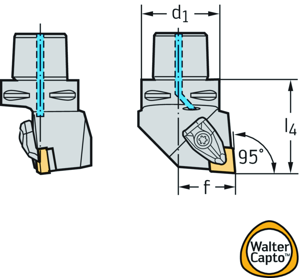 Drehhalter – Pratzenspannung C...-DCLN • Walter Turn • metrisch • Walter CaptoTM ISO 26623 • κ=95° • rechts • C4 • rhombische Platte • CN .. 1204 ..