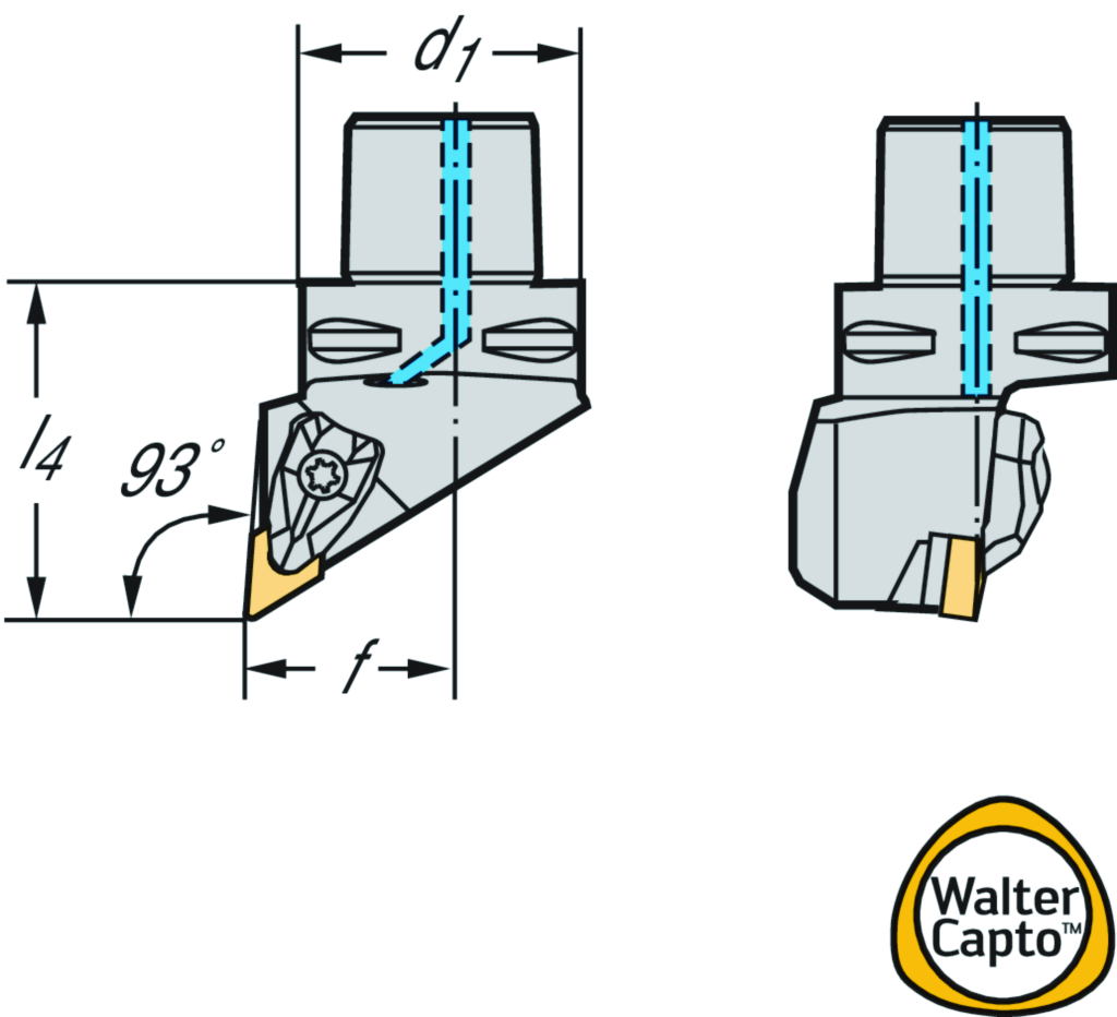 Drehhalter – Pratzenspannung C...-DDJN • Walter Turn • metrisch • Walter CaptoTM ISO 26623 • κ=93° • links • C4 • rhombische Platte • DN .. 1104 ..