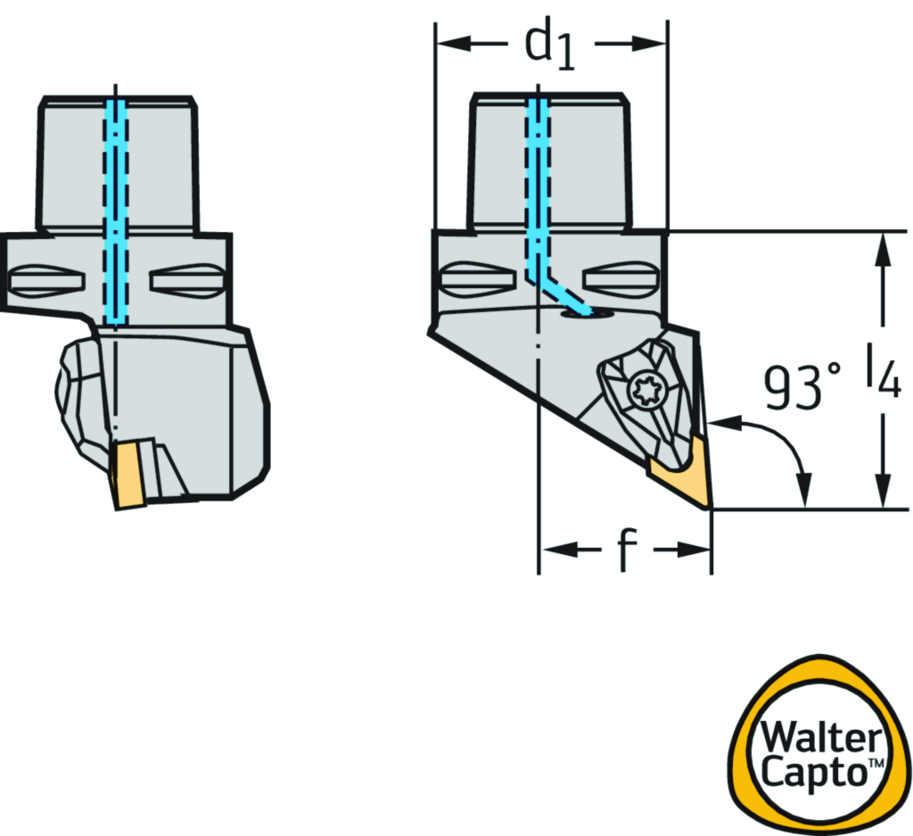 Drehhalter – Pratzenspannung C...-DDJN • Walter Turn • metrisch • Walter CaptoTM ISO 26623 • κ=93° • rechts • C4 • rhombische Platte • DN .. 1506 ..