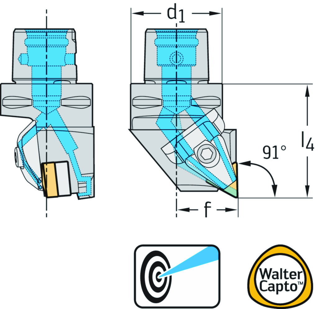 Drehhalter – Pratzenspannung C...-DTGN...-P • Walter Turn • metrisch • Walter CaptoTM ISO 26623 • κ=91° • rechts • C4 • dreieckige Platte • TN .. 1604 .. • Präzisionskühlung