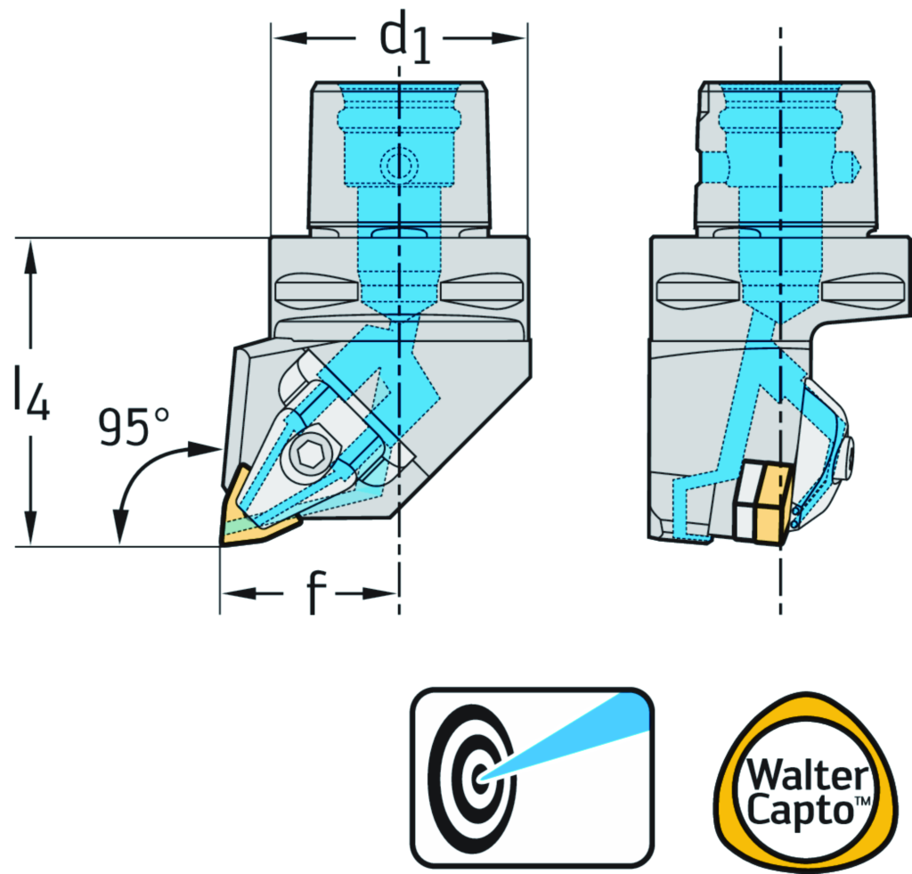 Drehhalter – Pratzenspannung C...-DWLN...-P • Walter Turn • metrisch • Walter CaptoTM ISO 26623 • κ=95° • links • C5 • Trigon-Platte • WN .. 0804 .. • Präzisionskühlung