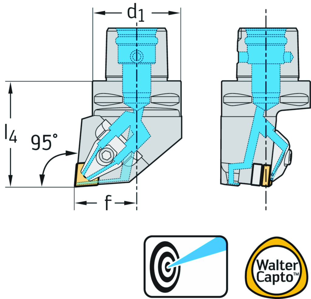 Drehhalter – Pratzenspannung C...-DCLN...-P • Walter Turn • metrisch • Walter CaptoTM ISO 26623 • κ=95° • links • C6 • rhombische Platte • CN .. 1204 .. • Präzisionskühlung
