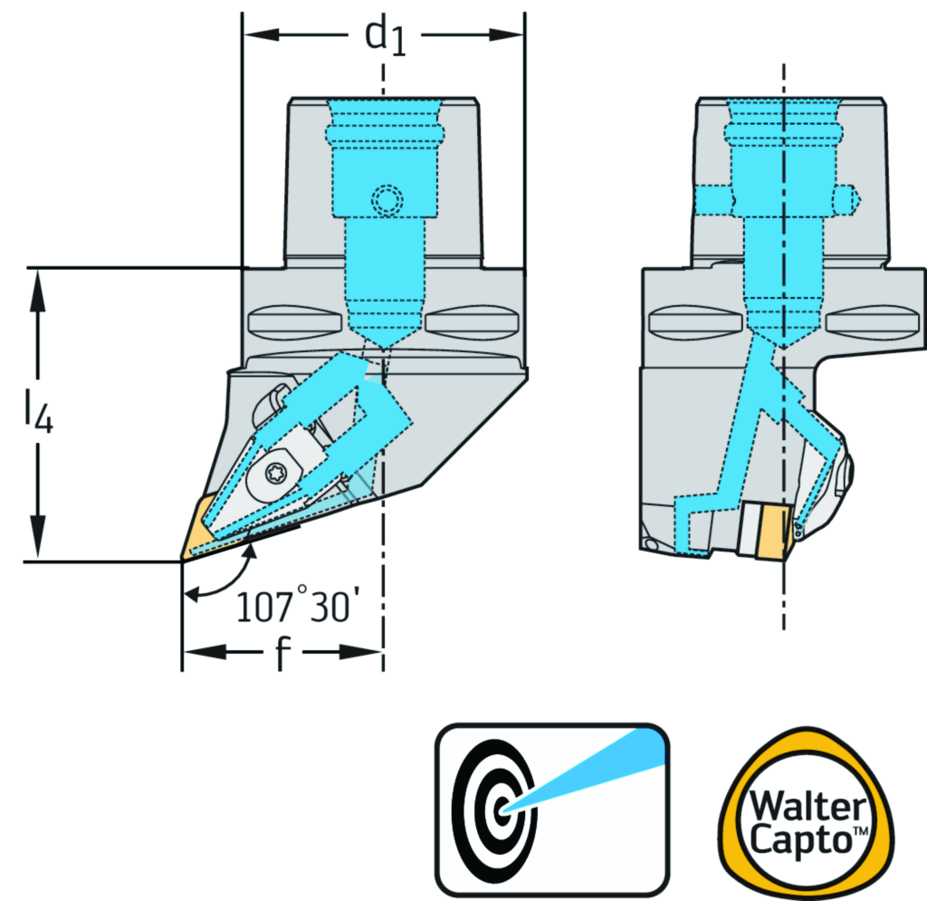 Drehhalter – Pratzenspannung C...-DDHN...-P • Walter Turn • metrisch • Walter CaptoTM ISO 26623 • κ=107,5° • links • C6 • rhombische Platte • DN .. 1506 .. • Präzisionskühlung