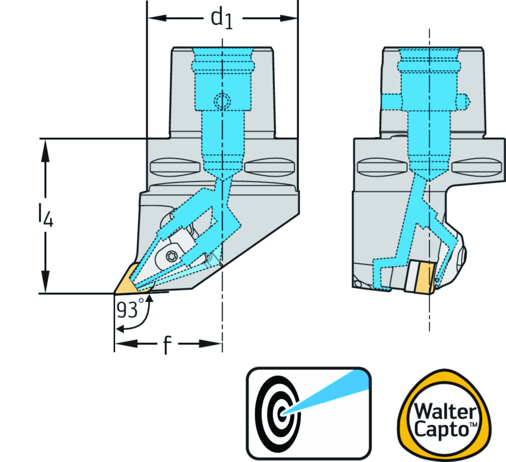 Drehhalter – Pratzenspannung C...-DDUN...-P • Walter Turn • metrisch • Walter CaptoTM ISO 26623 • links • C6 • rhombische Platte • DN .. 1506 .. • Präzisionskühlung
