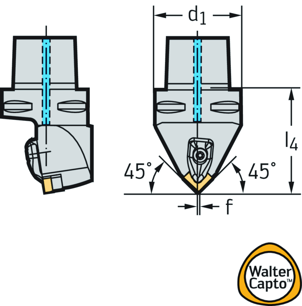 Drehhalter – Pratzenspannung C...-DSDN • Walter Turn • metrisch • Walter CaptoTM ISO 26623 • κ=45° • Neutral • C6 • quadratische Platte • SN .. 1204 ..