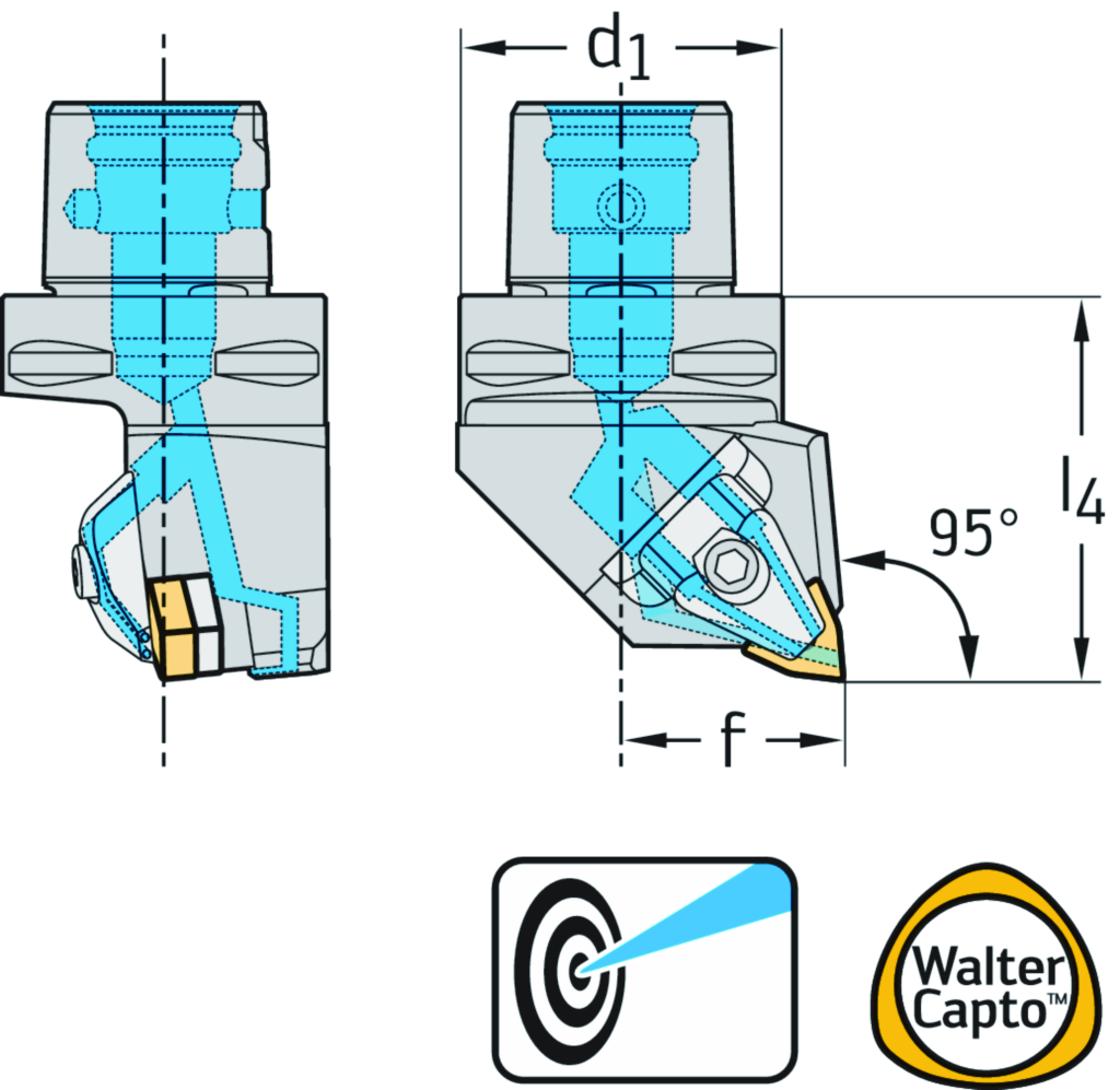 Drehhalter – Pratzenspannung C...-DWLN...-P • Walter Turn • metrisch • Walter CaptoTM ISO 26623 • κ=95° • rechts • C6 • Trigon-Platte • WN .. 0804 .. • Präzisionskühlung