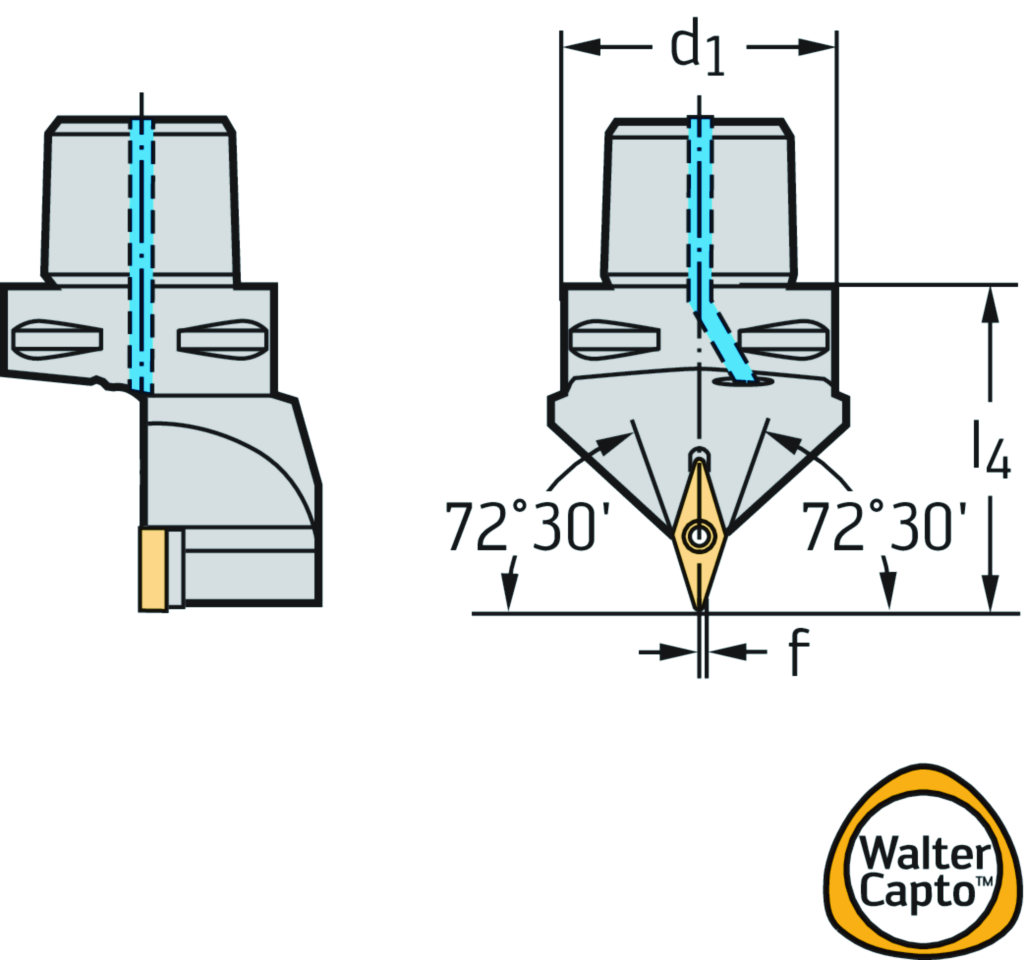 Drehhalter – Schraubenspannung C...-SVVB • Walter Turn • metrisch • Walter CaptoTM ISO 26623 • κ=72,5° • Neutral • C5 • rhombische Platte • VB .. 1604 ..
