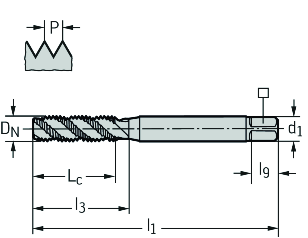 | Nach TAPCCYLF - Cutting tap for cylindrical threads - chip flutes | ||
