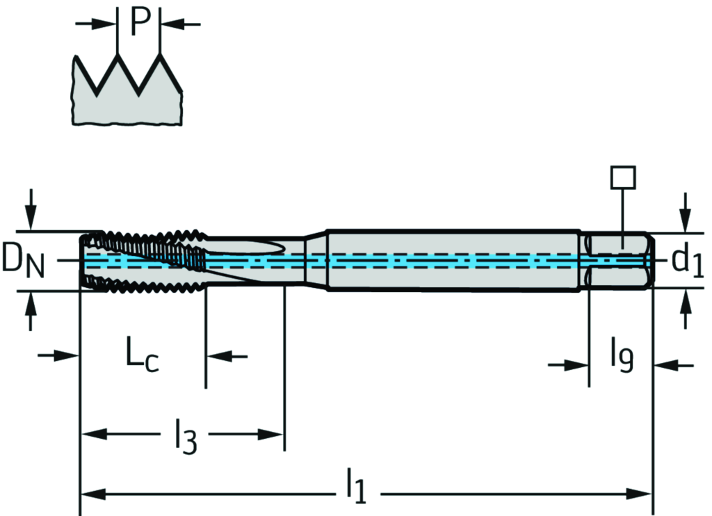 | Nach TAPCCYLF - Cutting tap for cylindrical threads - chip flutes | ||
