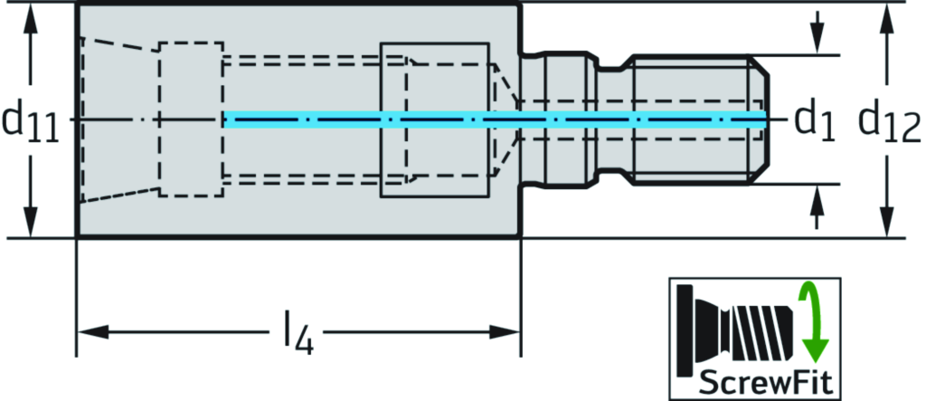 Reduzierung AK522 • metrisch • Für ScrewFit-Frontstücke • d1=M8 • d11=T14