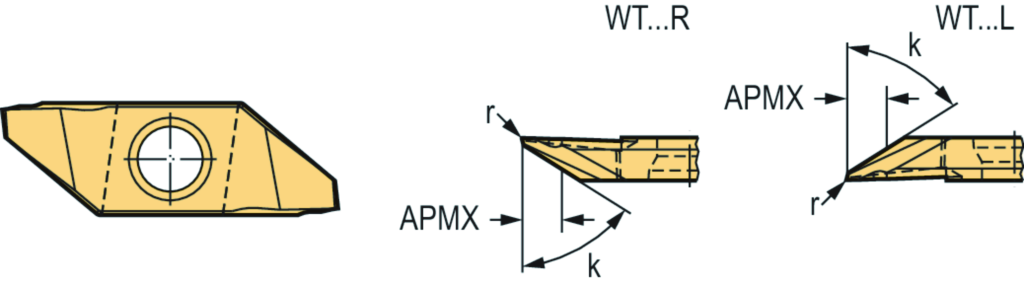 Rückwärtsdrehen – Schneideinsätze WT ...-VG8 • rechts • WN23 • s=3mm • r=0,05mm