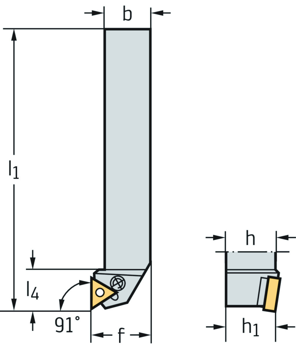 Schaftwerkzeug – Kniehebelspannung PTGN • Walter Turn • metrisch • Vierkantschaft • κ=91° • links • 20x20mm • dreieckige Platte • TN .. 1604 ..