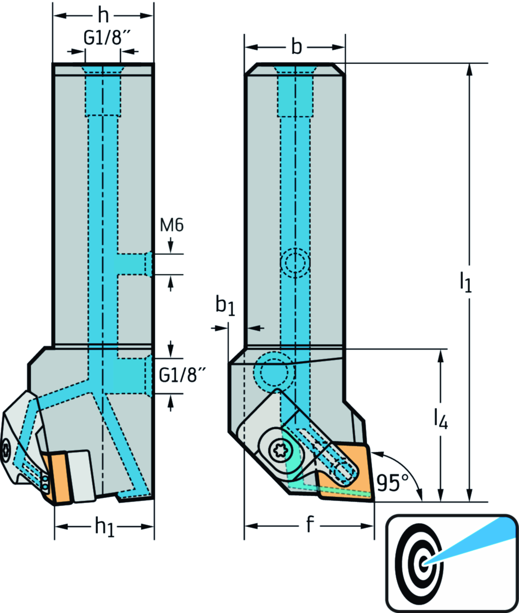 Schaftwerkzeug – Pratzenspannung DCLN...-P • Walter Turn • metrisch • Vierkantschaft • κ=95° • rechts • 25x25mm • rhombische Platte • CN .. 1204 .. • Präzisionskühlung