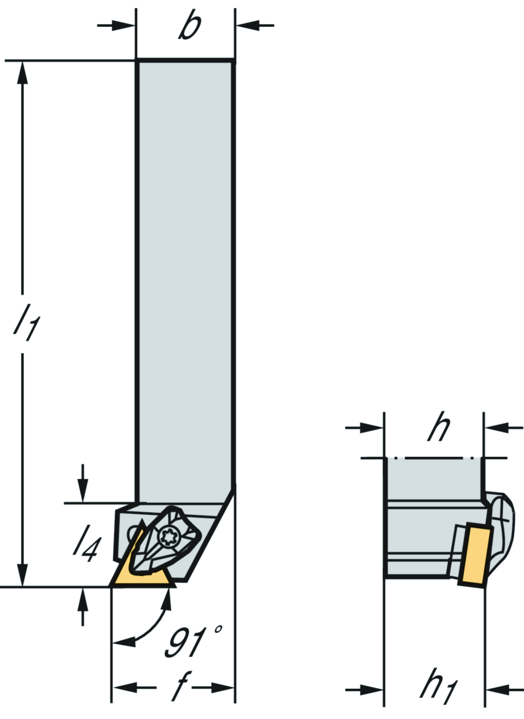 Schaftwerkzeug – Pratzenspannung DTFN • Walter Turn • inch • Vierkantschaft • κ=91° • links • 25x25mm • dreieckige Platte • TN .. 2204 ..