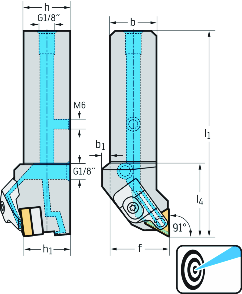 Schaftwerkzeug – Pratzenspannung DTGN...-P • Walter Turn • inch • Vierkantschaft • κ=91° • rechts • 25x25mm • dreieckige Platte • TN .. 1604 .. • Präzisionskühlung