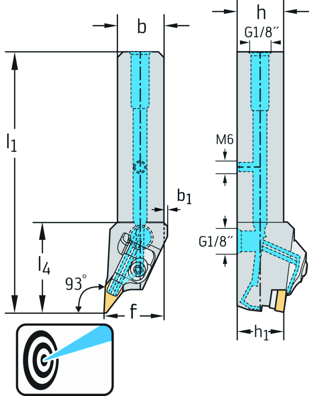 Schaftwerkzeug – Pratzenspannung DVJB...-P • Walter Turn • metrisch • Vierkantschaft • κ=93° • links • 25x25mm • rhombische Platte • VB .. 1604 .. • Präzisionskühlung