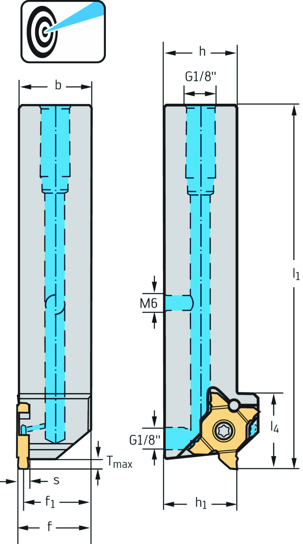 Schaftwerkzeug – Radialstechen G3011...-P • Schraubenklemmung • Präzisionskühlung • metrisch • Vierkantschaft • links • MX22 • s=4mm • Tmax=6mm