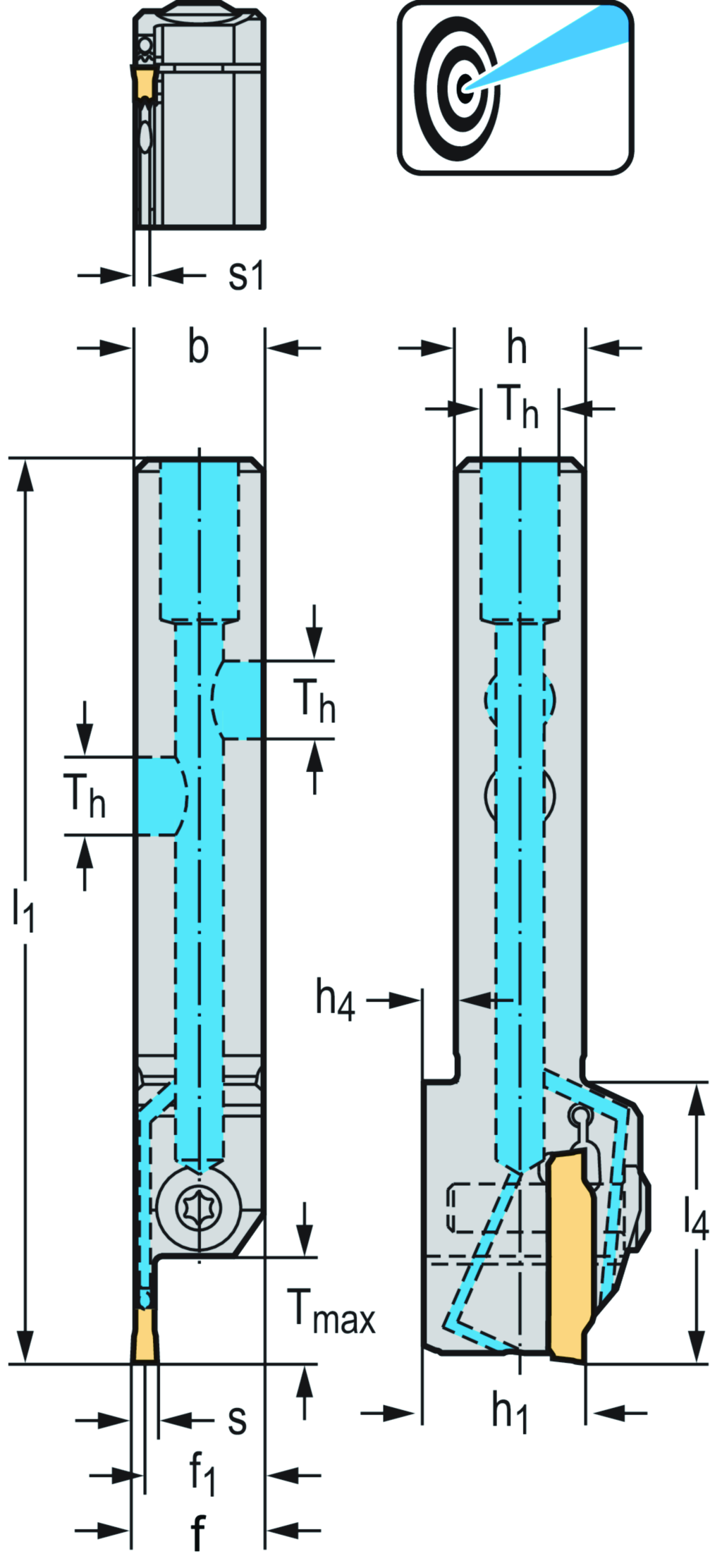 Schaftwerkzeug – Radialstechen G5011...-P • Schraubenklemmung • Präzisionskühlung • metrisch • s= • Tmax=