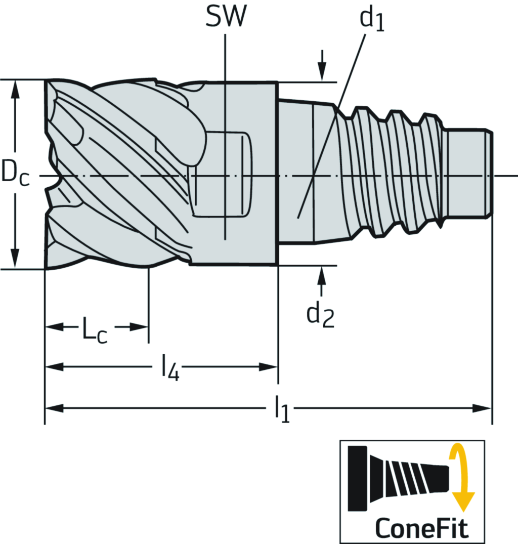 | Schneidendurchmesser 1 (Nenndurchmesser) | A1 | 15,875 mm |