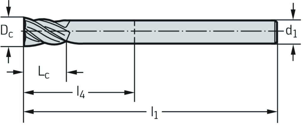 VHM-Eckfräser MC112 • Advance • Schaft DIN 6535 HA • metrisch • Drallwinkel 30° • Lange Reichweite • Typ HSC 30 • Zentrumsschneidfähigkeit • WJ30TF • Dc=6,3mm • Z=4
