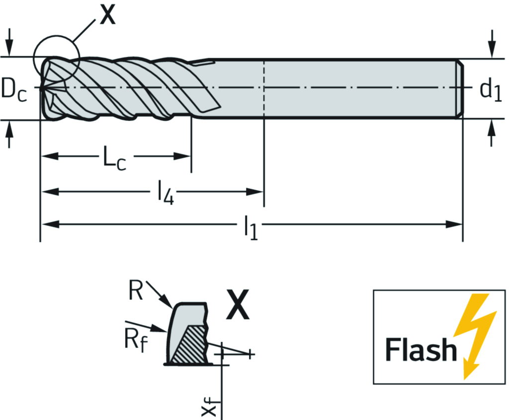 | Anzahl wirksamer Schneiden, stirnseitig | ZEFF | 4 |