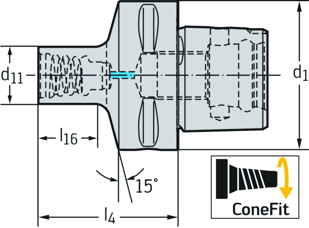 Walter CaptoTM-Aufnahme AK681 • metrisch • Für ConeFit-Fräsköpfe • ISO 26623 • d1=C6 • d11=E16