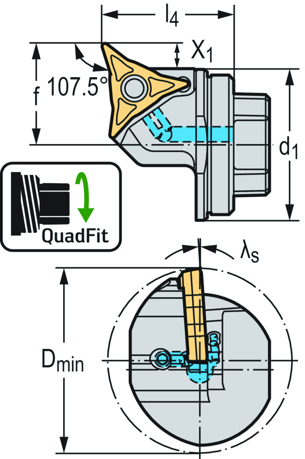 Wechselkopf – Kopierdrehsystem W1211-Q... • Walter Turn • metrisch • QuadFit • links • Platte mit speziellem Profil • WL .. 2504 .. • Präzisionskühlung