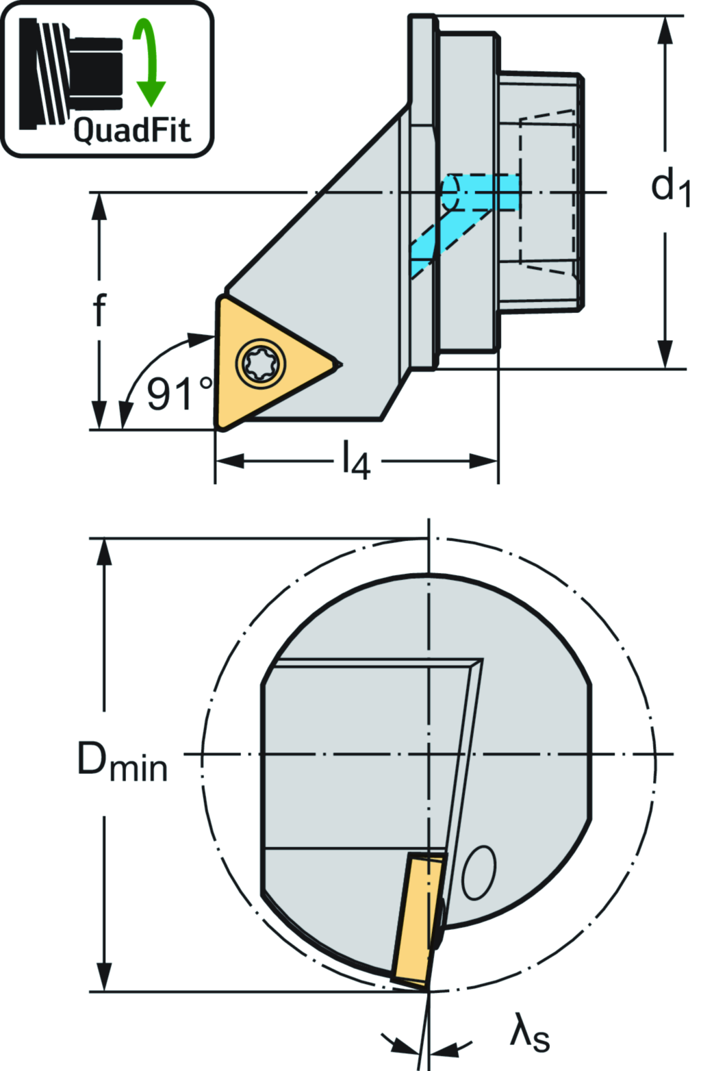 Wechselkopf – Schraubenspannung Q...-STFC • Walter Turn • metrisch • QuadFit • rechts • dreieckige Platte • TC .. 1102 ..