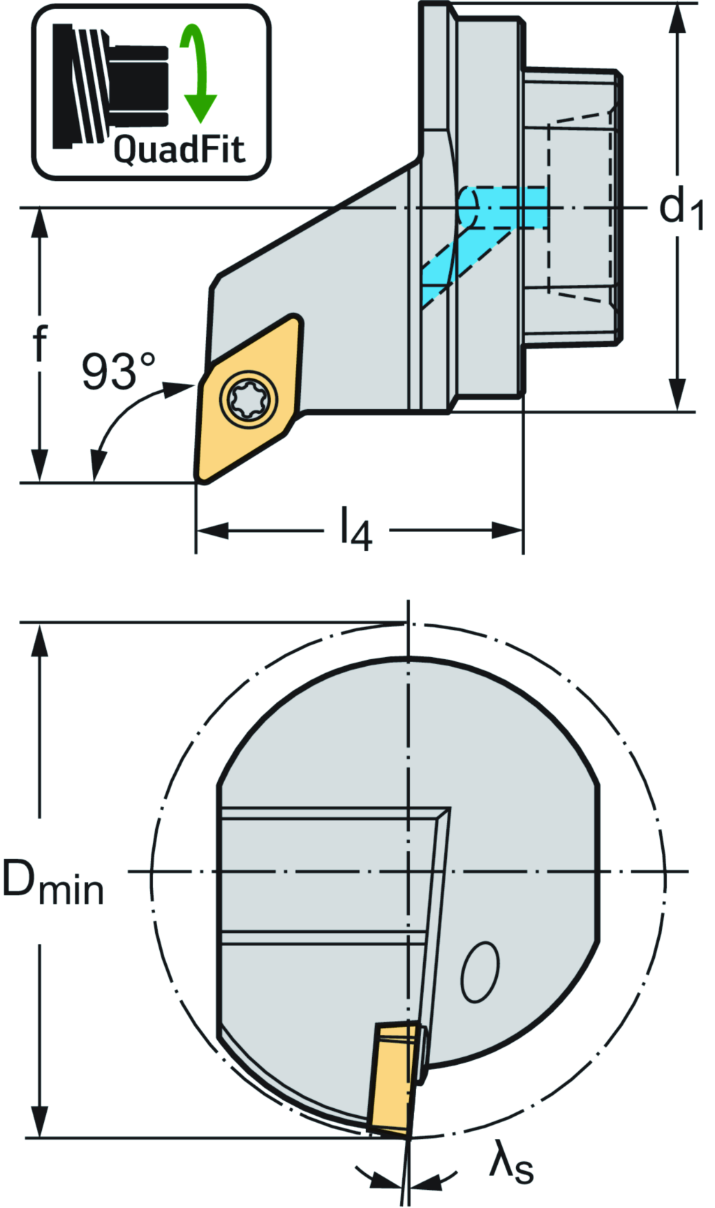 Wechselkopf – Schraubenspannung Q...-SDUC • Walter Turn • metrisch • QuadFit • rechts • rhombische Platte • DC .. 11T3 ..