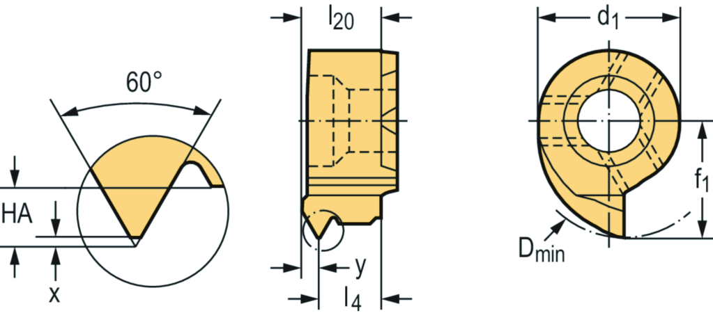 Wechselkopf – Vollprofil, American UN 60° WE..-I ...-I • rechts • WSM23X • Gangzahl je Inch=24 • Gewindesteigung, min.=1,06-1,1mm