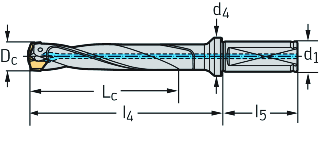 Wechselplatten-Bohrer D4140 • Drion·tec® • Zylinderschaft mit Fläche • metrisch • 5xD • Spitzenwinkel 140° • Z=2 • Dc=23mm